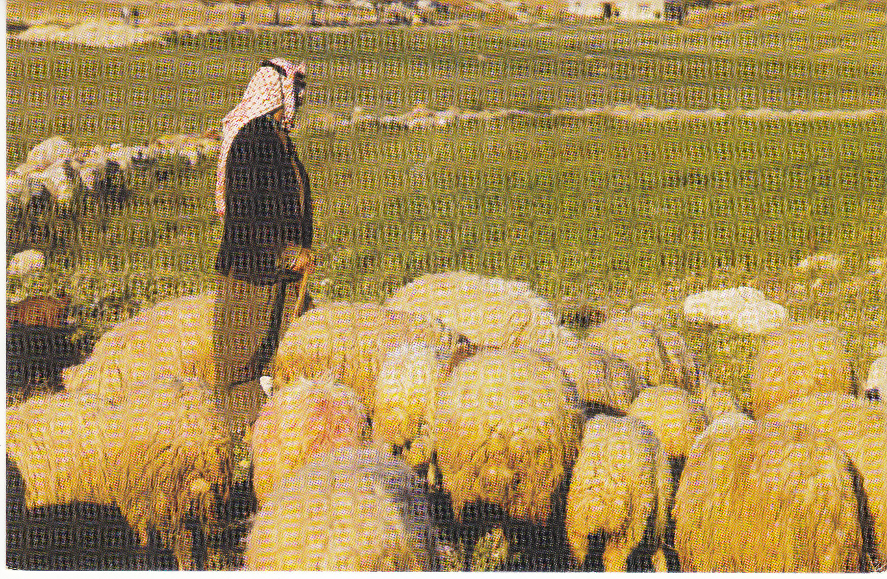 POSTCARD #130 Shepherd in Field, Bethlehem [Israel]. 513. Copyright Alami. Printed in the Holy Land. 5.75" x 3.75" EXC