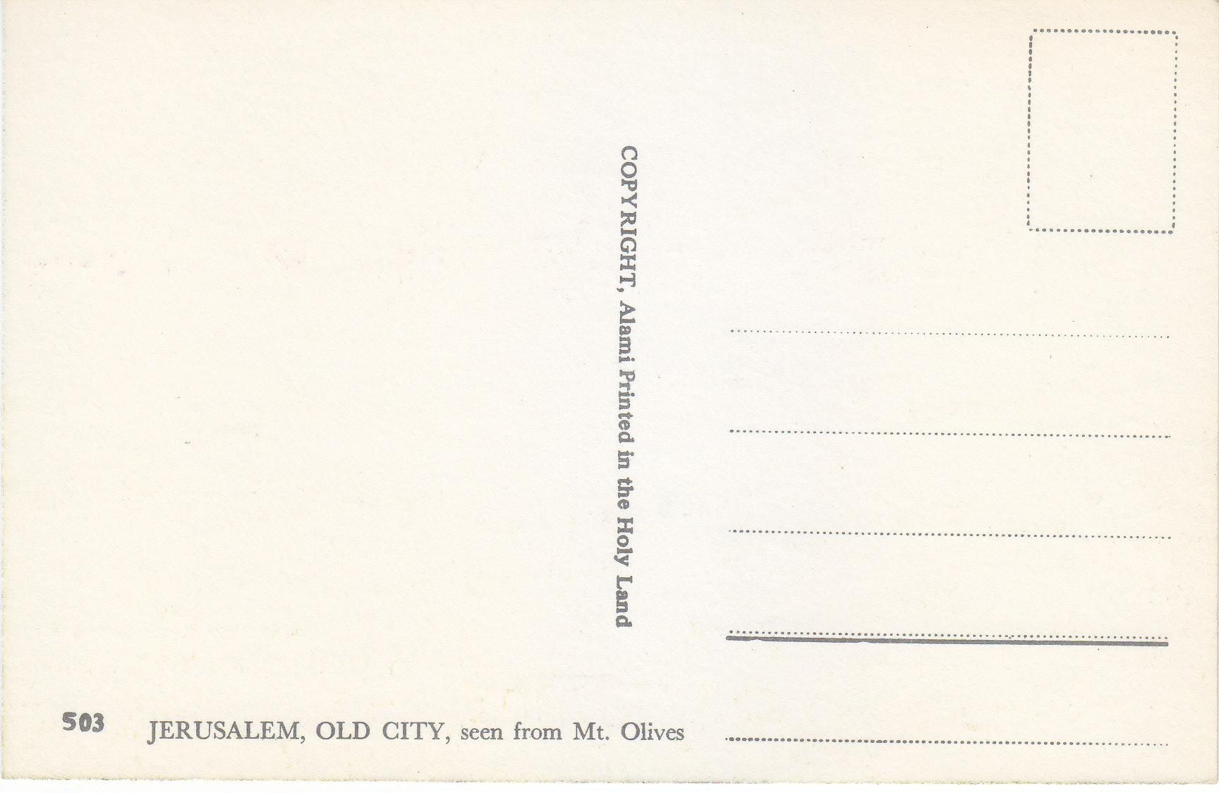 POSTCARD #143 Old City, seen from Mount of Olives, Jerusalem [Israel]. 503. Copyright Alami. Printed in the Holy Land. 5.75" x 3.75" EXC