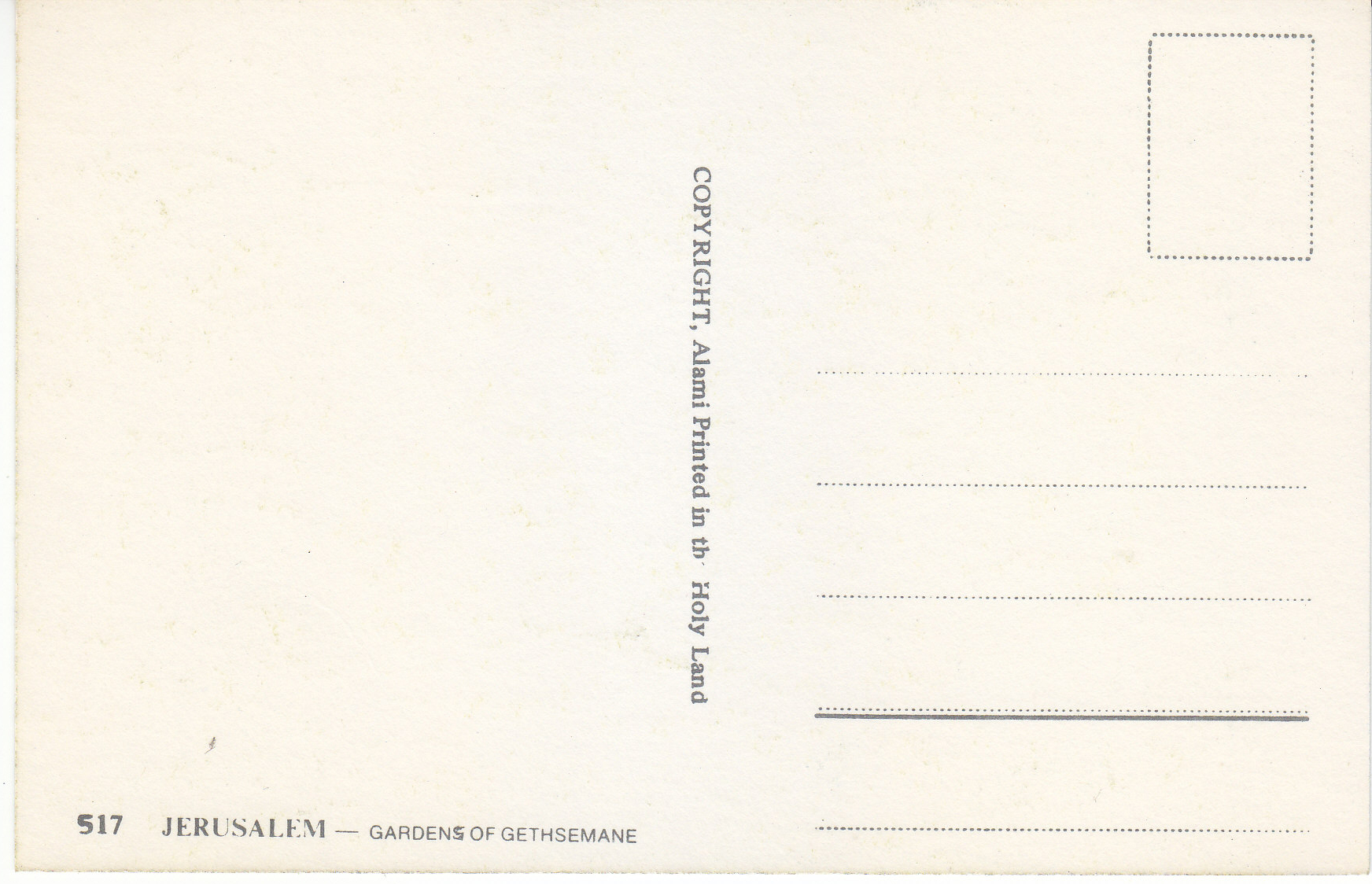 POSTCARD #144 Garden of Gethsemane, Jerusalem [Israel]. 517. Copyright Alami. Printed in the Holy Land. 5.75" x 3.75" EXC