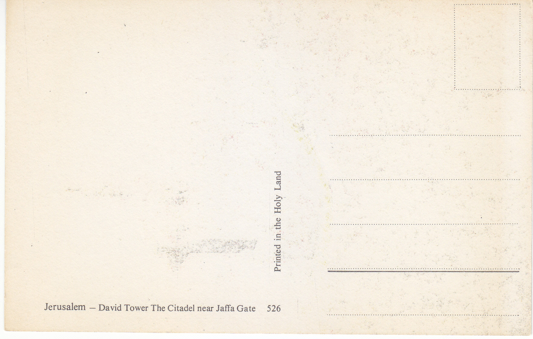 POSTCARD #173 David Tower, Citadel near Jaffa Gate, Jerusalem [Israel]. 526. Printed in the Holy Land. 5.75" x 3.75" EXC