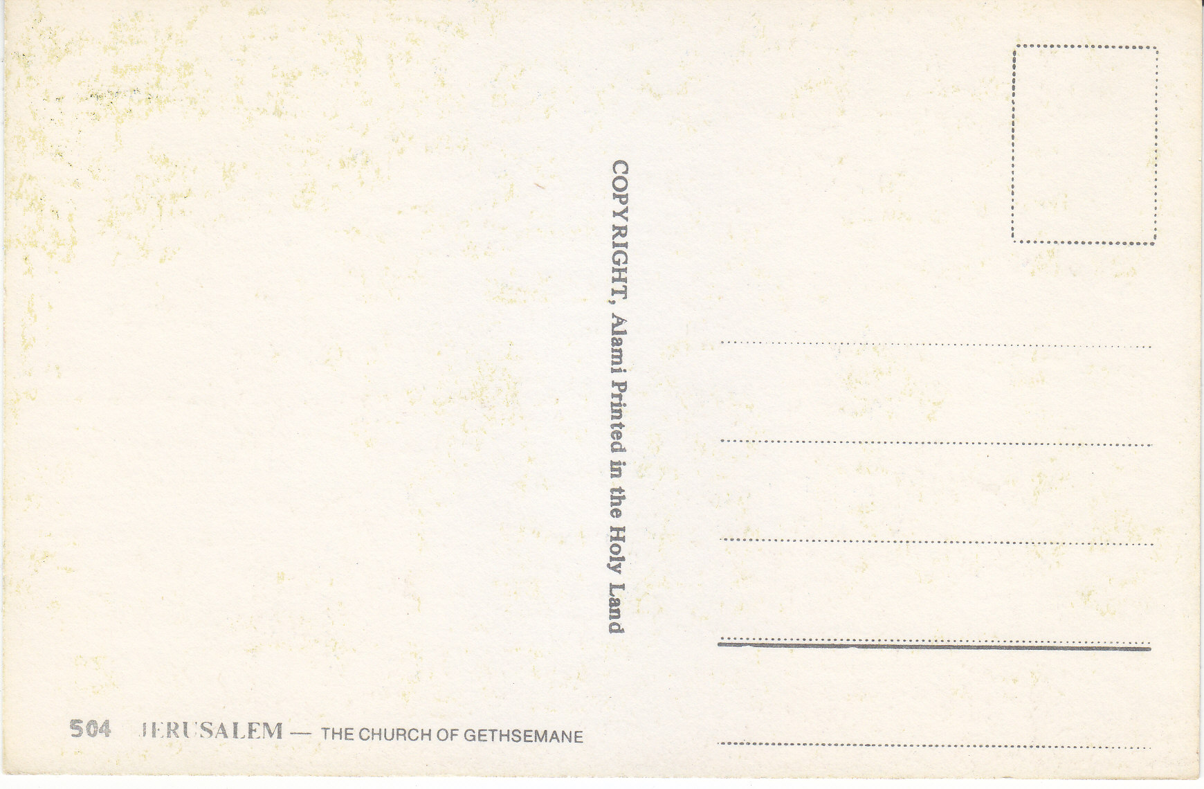 POSTCARD #175 Church of Gethsemane, Jerusalem [Israel]. 504. Copyright Alami. Printed in the Holy Land. 5.75" x 3.75" EXC