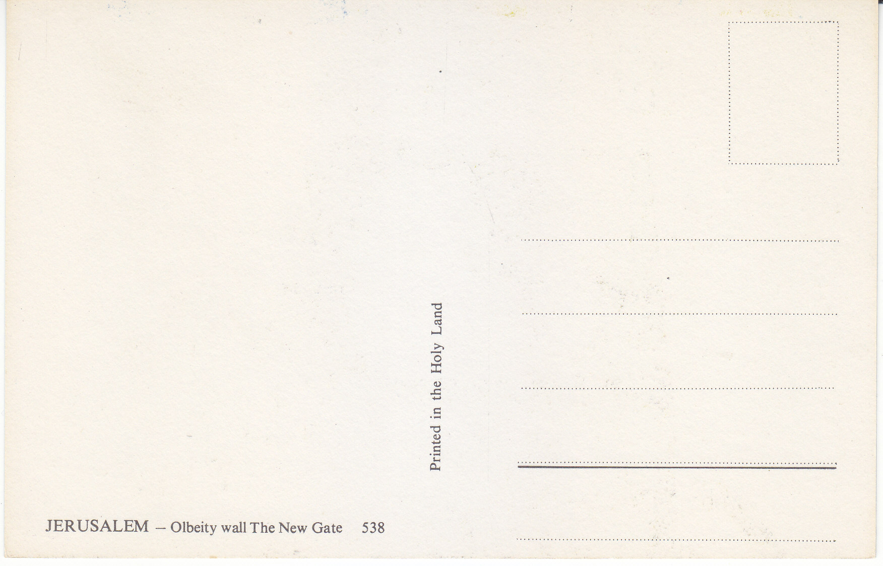 POSTCARD #178 The New Gate, Olbeity Wall, Jerusalem [Israel]. 538. Printed in the Holy Land. 5.75" x 3.75" EXC