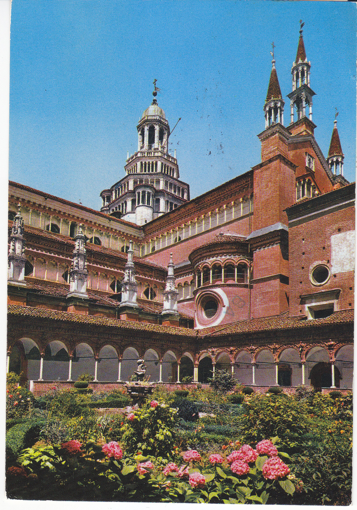 POSTCARD #209 The "Tiburio" [Lantern?] from the Small Cloister, Certosa [Monastery] di Pavia [Italy]. Da Fotografia a Colori Ektachrome. Milano [Milan, Italy]. Sogema Marzari S.p.A. Schio. Riproduzione Vietata. Fotoceleres.r.l., Milano [Milan, Italy]. 024. 6" x 4" VG