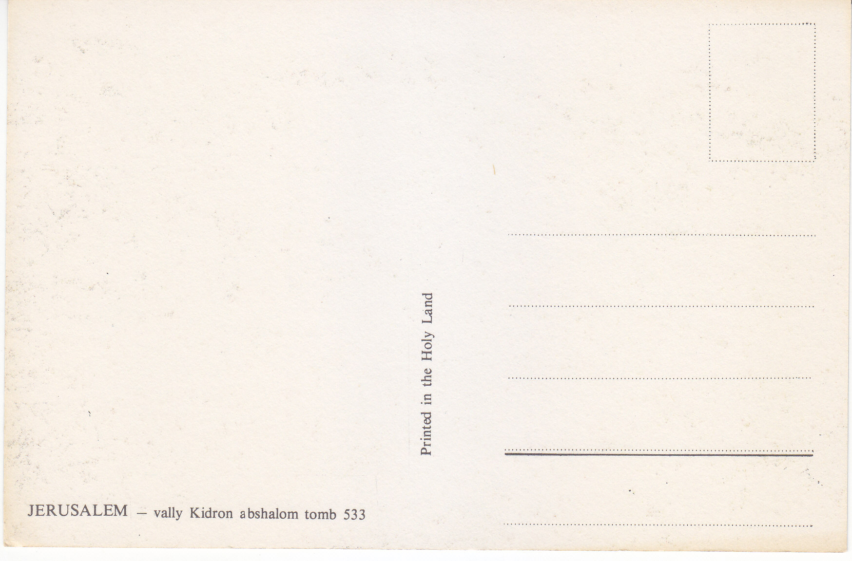 POSTCARD #322 Vally Kidron Abshalom Tomb, Jerusalem [Israel]. 533. Printed in the Holy Land. 5.75" x 4" EXC