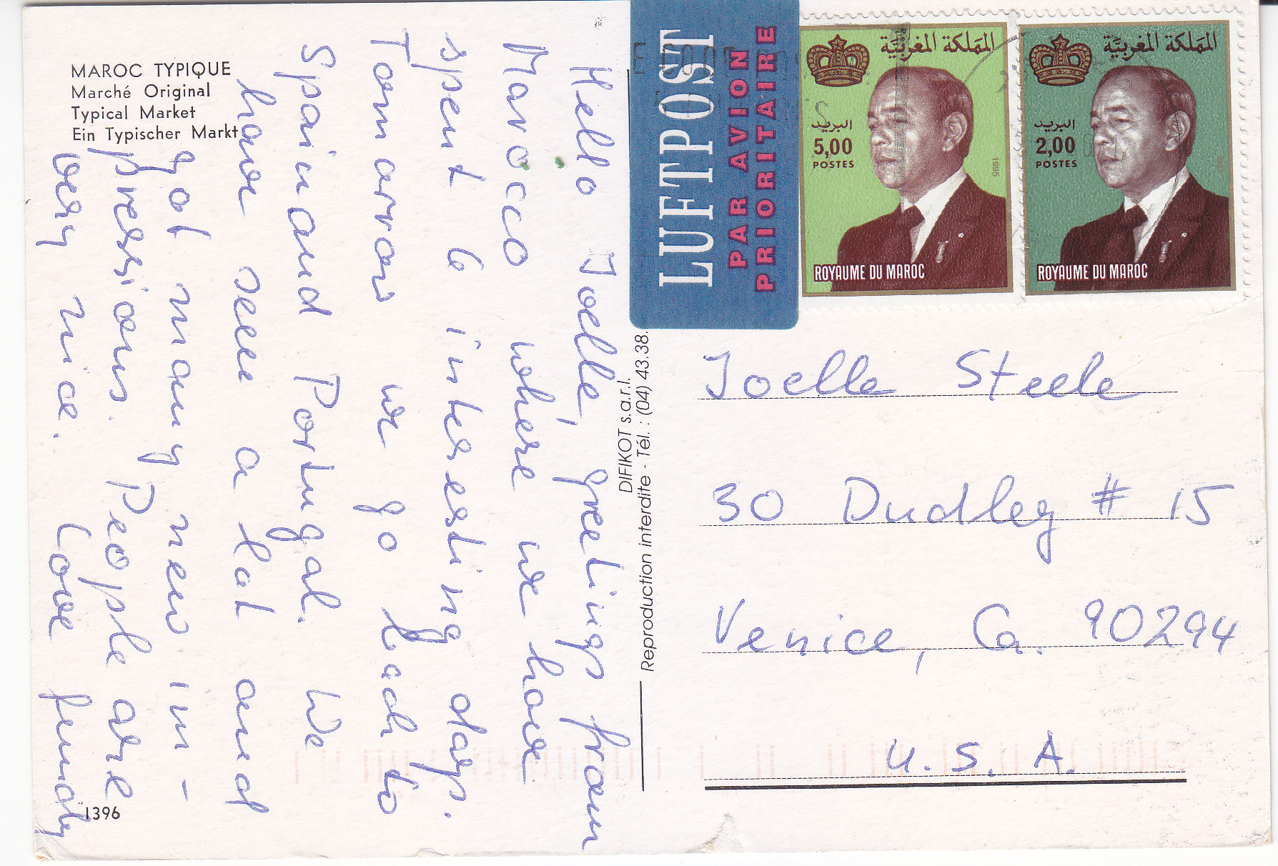POSTCARD #338 Typical Market [Moroc/Morocco]. 1396. Difikot s.a.r.l. Reproduction interdite. Tel.: (04) 43.38...? 6" x 4" VG