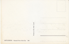 POSTCARD #108 General View of the City, Bethelehem [Israel]. 540. Printed in the Holy Land. 5.75" x 3.75" EXC