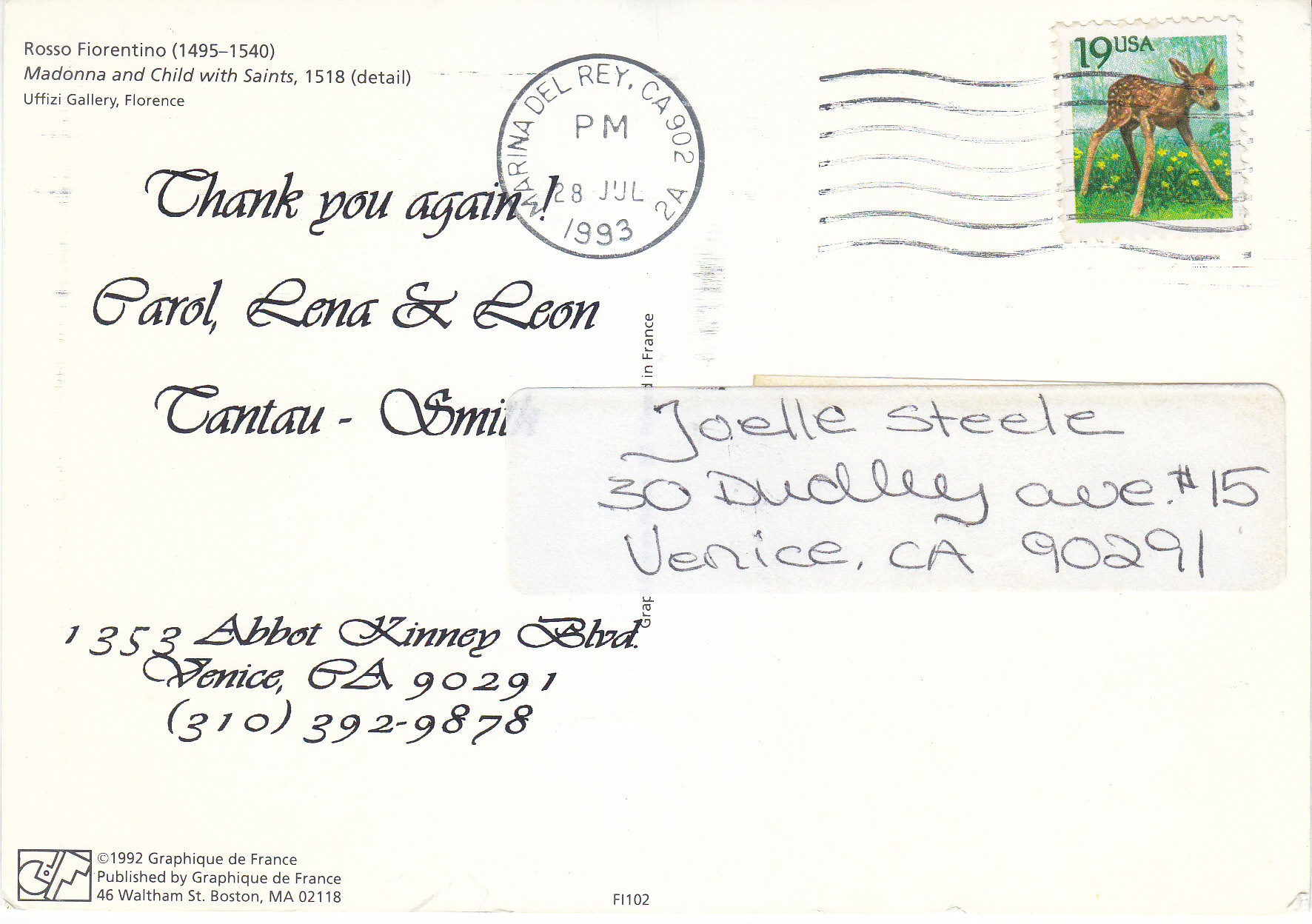 POSTCARD #059 Madonna and Child with Saints, 1518, Rosso Fiorentino (1495-1540). Uffizi Gallery, Florence, Italy. Copyright 1992 Graphique de France. Published by Graphique de France, 46 Waltham St., Boston, MA 02118. Fl102. 6" x 4" GD