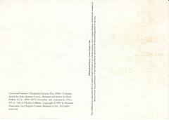POSTCARD #052 Centennial Summer (Twentieth Century-Fox, 1946). Costume sketch for Julia (Jeanne Crain), designed and drawn by Rene Hubert (U.S., 1899-1973). Gouache, ink, and pencil, 11-3/4 x 8-1/8 in. Gift of Charles LeMaire. Copyright 1987 by Museum Associates, Los Angeles County Museum of Art. All rights reserved. Hollywood and History: Costume Design in Film. This exhibition was organized by the Los Angeles County Museum of Art with the assistance of the Costume Designers Guild and the Academy of Motion Picture Arts and Sciences. It was made possible by a grant from the National Endowment for the Arts. 4.25" x 6" EXC